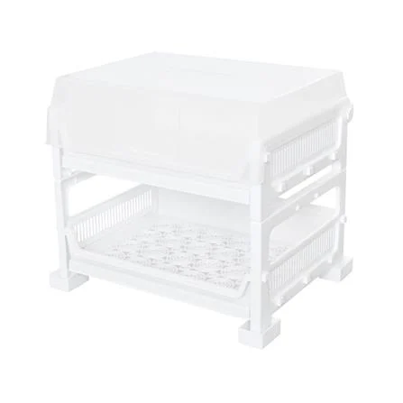 ชั้นคว่ำแก้วพลาสติก 2 ชั้น มีฝาครอบและขารอง KECH